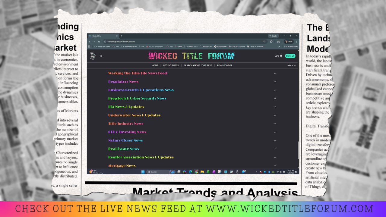 Wicked Title Forum maintains its independence through the support of readers like you. This post has been free for you to read thanks to their generous support and belief in our mission. Each Title Underground takes about 4-6 hours to compile and a review of almost 500 news stories, blogs, podcasts and videos from hundreds of sources. If you enjoyed this news recap and want to ensure we continue to create valuable content for the title insurance industry, please consider supporting usβ¦