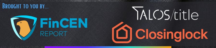 Brought to you by: 🦅FinCEN Report,🔒 Closinglock, 🤖 Talos Title AI, 🌍 Foreign Tax CPA, 🧱 Brickhouse Consulting, 🖊️Dotted Line Signings, Razi Exchange & Our Paying Readers