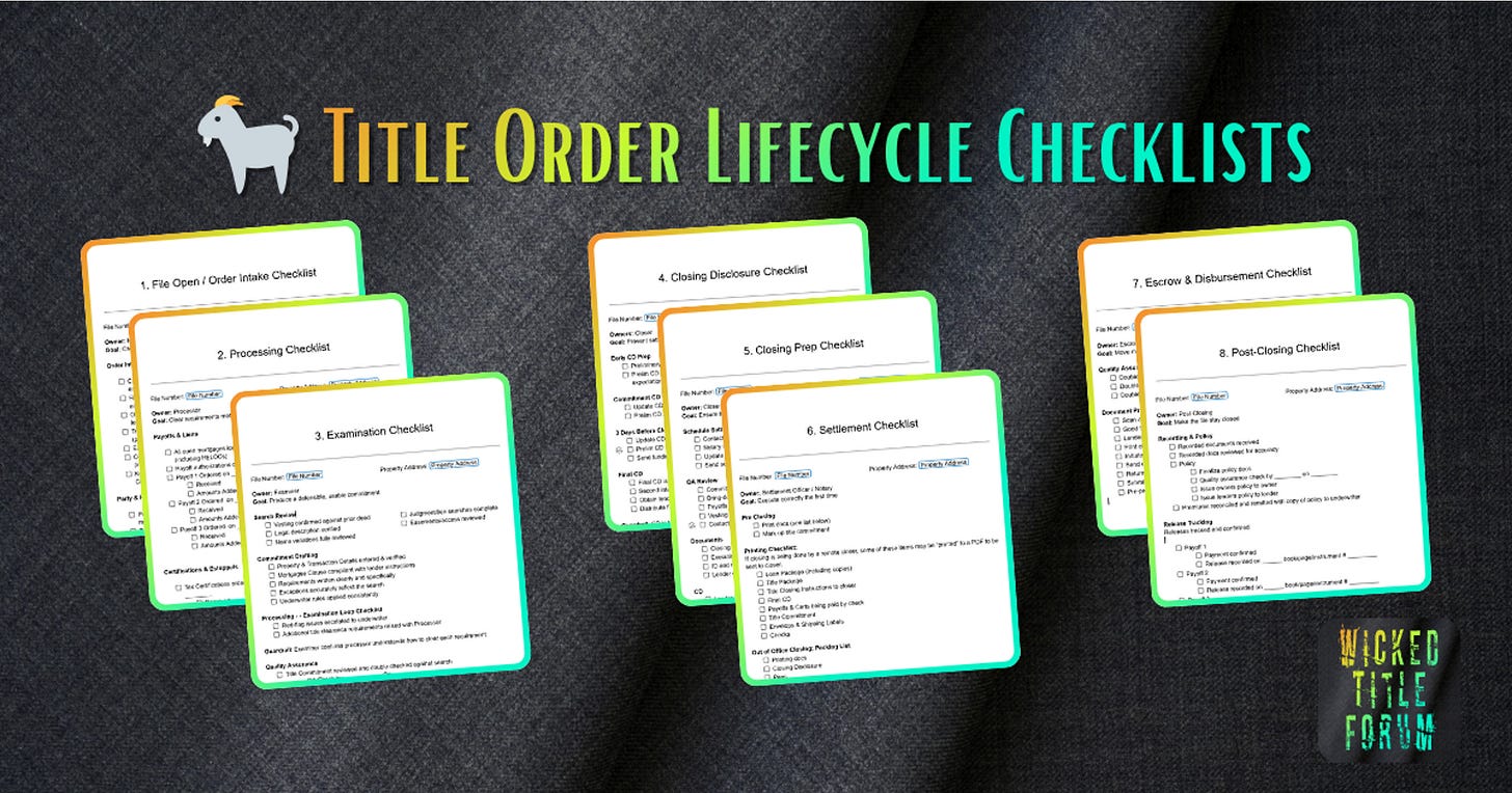 Plug-and-play operational checklists for every stage of the title order lifecycle, designed to streamline workflows, prevent errors, and ensure smooth, compliant real estate transactions.