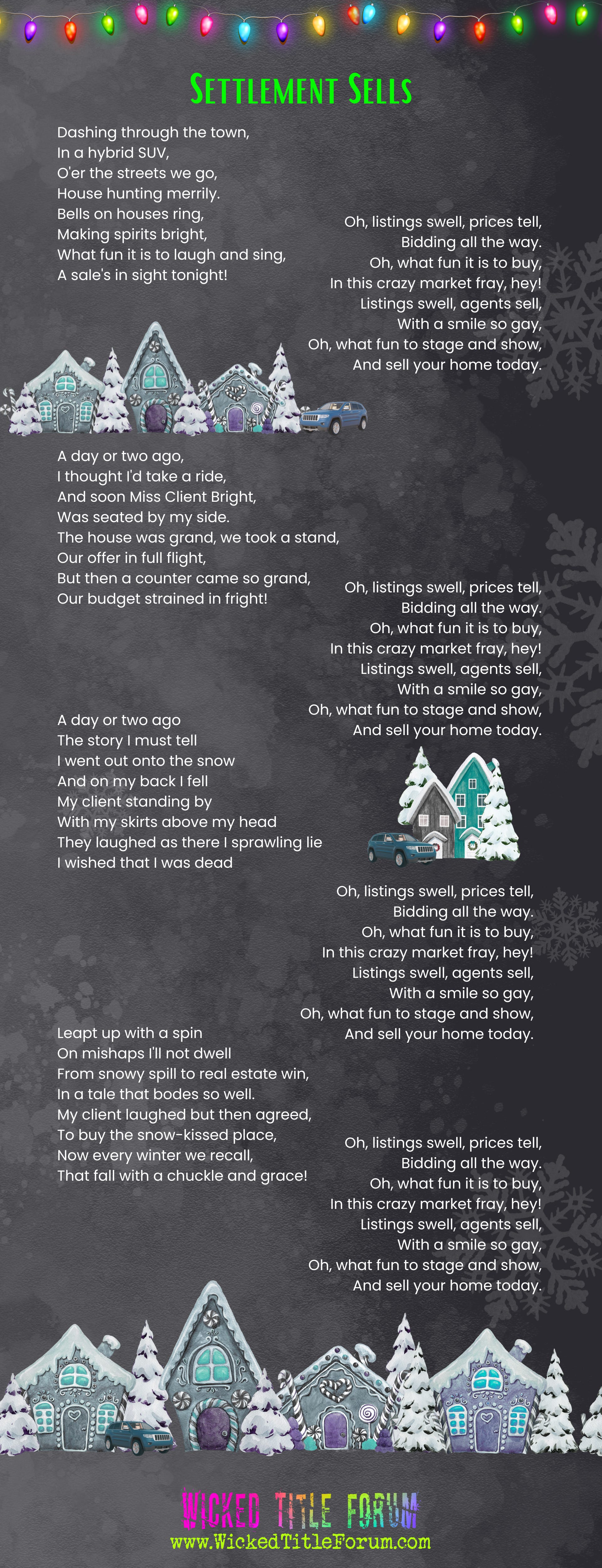 Jingle Bells has gone full-on rock ballad in this wickedly fun real estate industry twist! "Settlement Sells" takes the chaotic world of home showings and sets it to electrifying guitar riffs and powerhouse vocals.