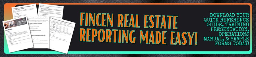 This is a delay, not a repeal. AML reporting for real estate is comingāand no, you shouldnāt just ignore it until 2026. Preparing now by training staff and prepping your data collection workflows and forms will ease your transition and minimize the time involved in actually filing the report. Iāve even created an Easy Kit to make your training and prep time even faster!