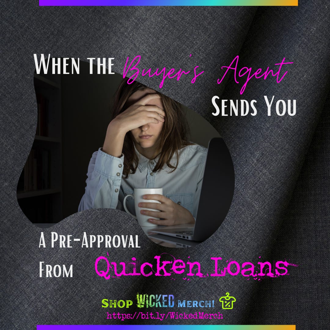 When the Buyer's Agent sends you a pre-approval from Quicken Loans, or any other lender notorious for poor customer service, late docs and even later funding.