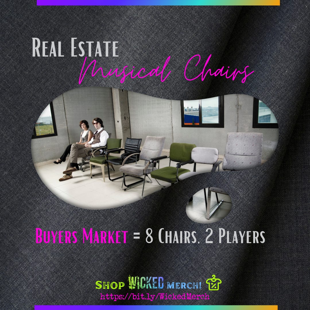In the game of real estate musical chairs a Buyer's Market means there are 8 chairs and only 2 players!